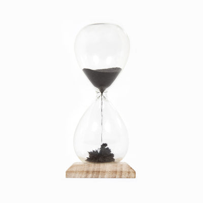 In die letzte Kategorie fällt unsere Magnetische Sanduhr, die diese zeitlose (badum-tss...) Technologie durch die Verwendung von Eisenspänen und einem Magneten im Sockel der Uhr mit neuen faszinierenden Eigenschaften ausstattet. Nimm' einfach den Glaskolben in die Luft, drehe ihn um und setze ihn auf den Magneten im Holzsockel. Die feinen Eisenspäne fallen eine Minute lang durch die Öffnung und formen faszinierende Muster auf dem Boden der Sanduhr. Sobald Du den Glaskorpus von der Basis entfernst, verlieren die Späne ihre magnetische Ladung wieder. Die Anwendungsmöglichkeiten sind schier unendlich: Du kannst messen, wie lange Dein Computer benötigt, um den Browser zu öffnen, Du kannst die perfekte Zeit für das Ziehen Deines Tees einhalten, usw.