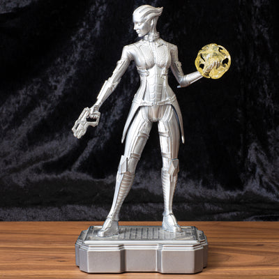 Deswegen ist ihr diese silberne Mass Effect Statue Liara gewidmet. Sie zeigt die Asari in Kampfpose sowohl mit ihrer Waffe, als auch im Begriff eine Energieattacke auf ihre Feinde zu schleudern. Dabei ist die Statue so detailliert gearbeitet, dass sie beinahe so lebendig wirkt, wie sonst nur auf deinem Bildschirm. Dank des stabilen Standfußes bewahrt sie überall Haltung, egal ob auf deinem Sammlerregal oder dem Schreibtisch.