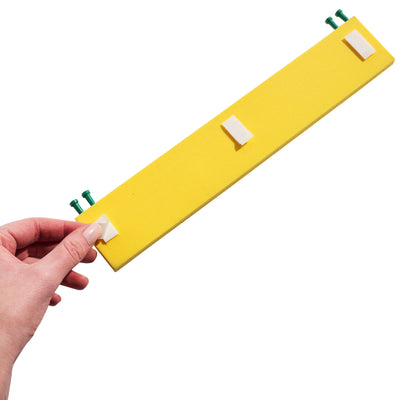 De MOPI wordt geleverd met kleefbevestiging en 4 prikbordpinnen en is 30cm*5cm groot.