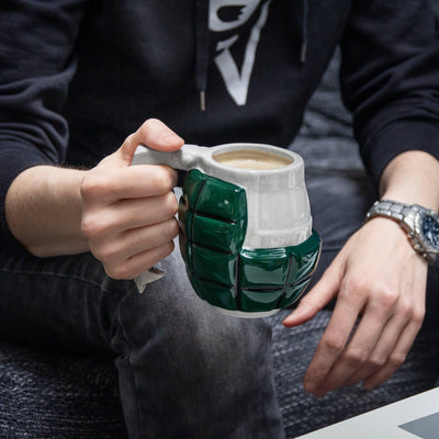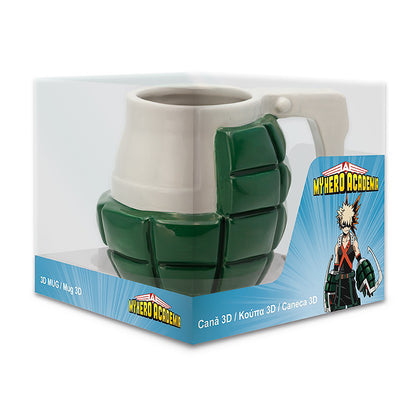 De My Hero Academia 3D beker "Bakugo" laat je vanaf nu je drankjes drinken uit een van Bakugo's granaat-armbeschermers! In plaats van explosief zweet kun je beter verfrissende drankjes inschenken en je idealiter ook niet laten meeslepen door Bakugo's opvliegende karakter. Aangezien het onwijs zou zijn om een granaat te verhitten, moet je de beker ook niet in de vaatwasser reinigen of in de magnetron verhitten.