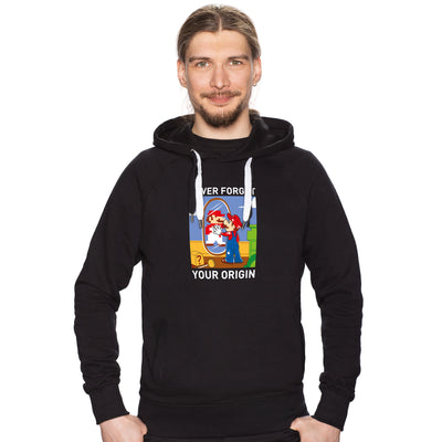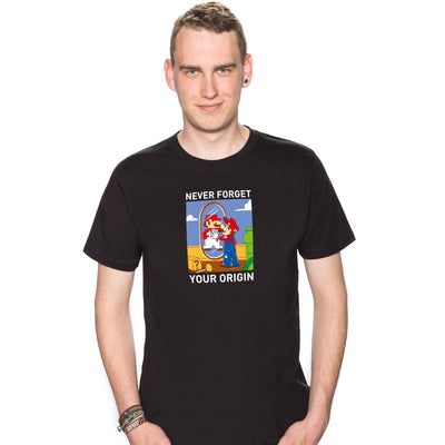 Ach, was waren das noch für Zeiten! Den Röhrenfernseher anschalten, das NES starten, nochmal ordentlich in das Modul pusten und schon konnte der Spaß losgehen! Keine Savegames, wenig Funktionen, simple Grafik, aber eben doch der Beginn vieler Gamer-Leidenschaften. Und keine Figur ist ikonischer, bekannter und beliebter als der kleine Klempner mit dem Schnurrbart - Mario! Mit diesem Never Forget Your Origin kannst Du Deine wahren Wurzeln zeigen und zu der Meinung stehen, dass früher auch 8 bit vollkommen ausgereicht haben!