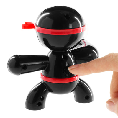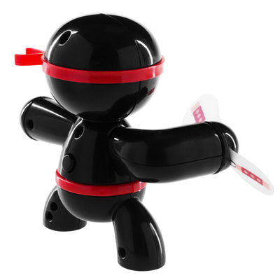 Overigens hoef je geen angst te hebben, deze krijger is echt loyaal en de werpsterren aan zijn riem worden nooit gebruikt. Zelfs als je per ongeluk in de ventilator terechtkomt, raak je niet gewond, want de rotorbladen zijn van zacht rubber dat meteen meegeeft. Zo zijn noch vingers noch papieren in gevaar. :)