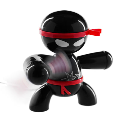 Je hoeft de kleine kerel alleen maar in de buurt van je computer te plaatsen en met de bijgeleverde kabel op een USB-poort aan te sluiten. Met de knop op zijn rug schakel je hem in en uit. Dankzij zijn speciale propeller-wapen voorziet de ninja je indien nodig van een heerlijk koele bries.