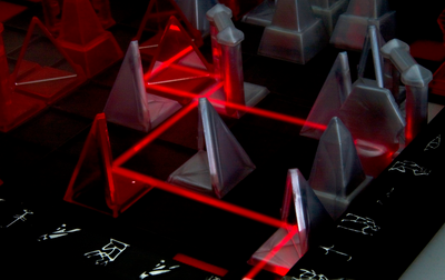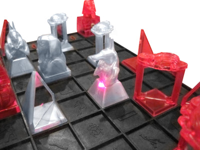 Es handelt sich bei diesem Spiel übrigens um Khet 2.0, das im Gegensatz zur ersten Version über zwei bewegliche statt eines fest installierten Lasers verfügt. Es sind also noch mehr Dynamik und logisches Denken angesagt!
