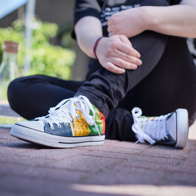 Vielleicht wusstest Du es noch gar nicht, auch Schuhe können geekig sein. Und zwar im besten Sinne. Vorbei sind die Zeiten, in denen man sich seine Textil-Treter selber mit Filzstift verzieren musste, um ihnen etwas nerdigen Glanz zu verleihen. Bei den T-Shirts haben wir ja schon ganz gut vorgelegt, jetzt haben wir endlich auch die Geek Shoes im Sortiment. :) Für die Walther Whites unter Euch hier das Modell mit dem Periodensystem der chemischen Elemente, für Verspielte gibt es auch die Block-Schuhe. Die Geschichte der Geek Shoes haben wir in unserem Blog zusammengefasst.
