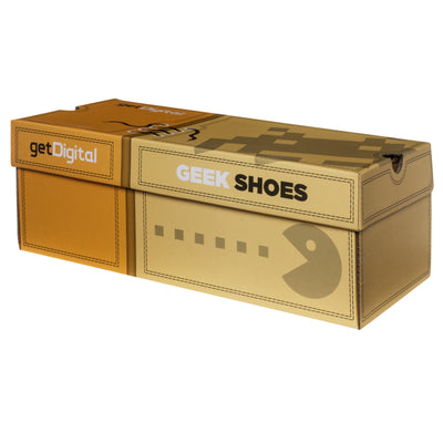 Falls Du Schuhkartons gerne zur Aufbewahrung für Kabelsalat nutzt oder vielleicht sogar ein Paar Geek Shoes verschenken möchtest, die Schuhe kommen in einer schönen Box mit passendem Design.