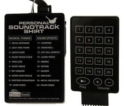 Die Möglichkeiten sind mannigfaltig. Dieses Shirt ist ein hervorragendes Mittel, um sich auf Parties oder in Diskotheken effektiv gegen schlechte Musikwahl zur Wehr zu setzen oder Deinen Freunden umweglos Deine neuesten Lieblingsstücke vorzuspielen (laut oder leise, ganz wie Du magst, denn die Lautstärke ist natürlich auch einstellbar). Oder aber Du bedienst Dich der Soundeffekte aus bekannten Computerspielen oder Filmen und gestaltest Dein Leben zukünftig als Jump 'n' Run, Shooter oder JRPG. Wie auch immer Du das Soundtrack Shirt einsetzt - es wird Dein Reallife noch spannender und abwechslungsreicher gestalten, als Filme und Computerspiele es je sein könnten.
