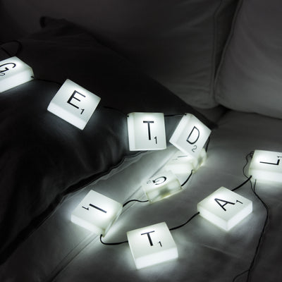 Das Glück, ein Zehn-Buchstaben-Wort legen zu können, hat man bei Scrabble nicht so oft. Es fehlt halt immer irgendwas und schließlich endet man mit dem ungenutzten X, das immerhin acht Punkte wert ist... Diese Lichterkette schenkt Dir nicht nur zehn Felder auf einmal, Du darfst auch jeden Buchstaben frei wählen! :)