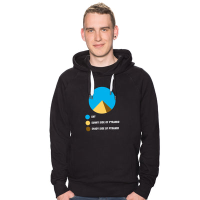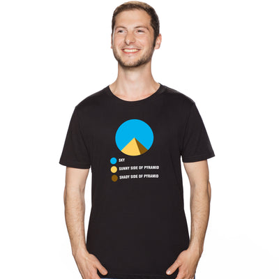 Dat je met diagrammen ook kattenkwaad kunt uithalen, weten we niet pas sinds vandaag. Zo kun je bijvoorbeeld met de juiste waarden en de juiste kleurstelling afbeeldingen creëren. In het op het "Sunny side of the pyramid"-shirt te zien cirkeldiagram wordt bijvoorbeeld een piramide voor een blauwe hemel weergegeven. En het beste: de legenda klopt voor 100 procent! Het lijkt erop dat het gras aan de zonnige kant van de piramide toch groener is... ;)