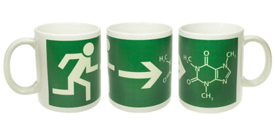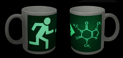 De populaire chemische structuurformule voor cafeïne, die op deze groen-witte beker is gedrukt, heb je natuurlijk meteen herkend. Mocht je ooit moe zijn of gewoon een situatie willen ontvluchten, werp dan eens een blik op deze beker, want de oplossing staat altijd recht voor je: cafeïne is jouw uitweg! Tegelijkertijd biedt dit product een heel bijzonder kenmerk voor iedereen die tot laat in de nacht werkt: de beker licht op in het donker, zodat je nooit meer hoeft te zoeken of hem per ongeluk omstoot.