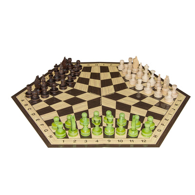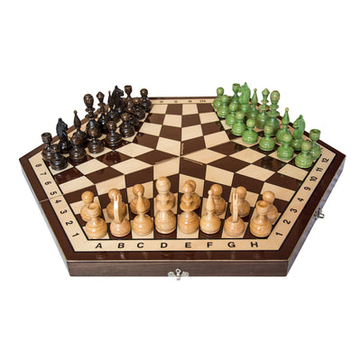 Gelukkig kunnen sommige spreekwoorden niet eenvoudig van het ene gebied naar het andere worden overgedragen. Anders zouden de uitvinders van ThreeChess Schaken voor 3 spelers zich misschien hebben laten weerhouden door de oude wijsheid "Te veel koks bederven de brij" om hun idee te verwezenlijken. Wat op papier eerst een beetje vreemd lijkt, oefent al na de eerste zetten een immense fascinatie uit.