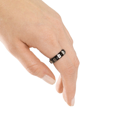 Mit dem W20 Würfel-Ring für RPG und Tabletop kann Dein gepeinigter Rücken aufatmen! Dieser Ring aus Edelstahl verfügt nämlich über einen drehbaren Außenring, der die Zahlen von 1 bis 20 zeigt. Vorbei sind also die Zeiten, in denen W20 überall hinfliegen und -rollen: Bring einfach den Ring zum Drehen und warte darauf, dass ein Feld im markierten Bereich zum Stehen kommt. Natürlich produziert der Würfel statistisch faire Ergebnisse! Und das Beste: Er kommt vollkommen ohne Schmiermittel aus, Du kannst ihn also einfach mit Seife und warmem Wasser reinigen, falls doch mal etwas Schwarzpelz-Blut auf ihn getropft ist. ;)