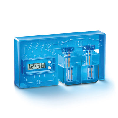 Elektrische Geräte brauchen entweder Batterien oder einen Netzstecker – klingt logisch. Aber was wäre, wenn Du Deine Geräte mit Wasser betreiben könntest? Der „Wasserbetriebene Uhr“-Baukasten lässt Dich dieser im ersten Moment absurd anmutenden Idee nachgehen und eine Digitaluhr bauen, die tatsächlich ohne Batterien und Netzstecker auskommt!