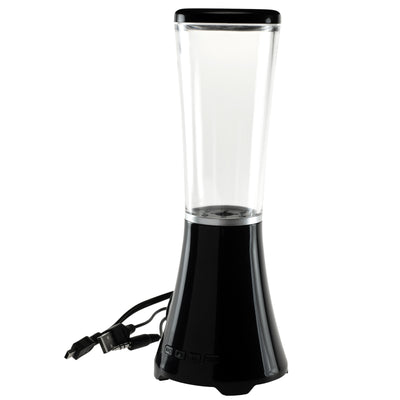 Met de bijgeleverde 2-in-1-kabel kun je alle gangbare apparaten voor muziekweergave met de luidspreker verbinden, of via USB of AUX-aansluiting. Bovendien heeft het apparaat twee poorten voor USB en MicroSD. De waterluidspreker wordt opgeladen via de pc of een geschikte oplader met USB-aansluiting, daarna werkt hij ongeveer 2-3 uur. Het opladen duurt even, maar je kunt de luidspreker ook tijdens het gebruik via de pc van stroom voorzien en zo eindeloos genieten van de kleurrijke fonteinen. :)