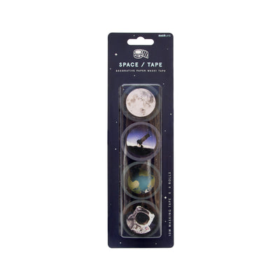 Solche extremen Situationen wirst du mit dem Weltraum Klebeband hoffentlich nicht lösen müssen. Wenn Geschenke eingepackt, Kalender oder Notizbücher dekoriert oder sonstige Alltagsprobleme gelöst werden müssen, kann aber auch dieses Klebeband die Rettung sein. Ein Set enthält gleich vier spacige Motive, wie Astronauten, Sterne oder die Mondphasen.