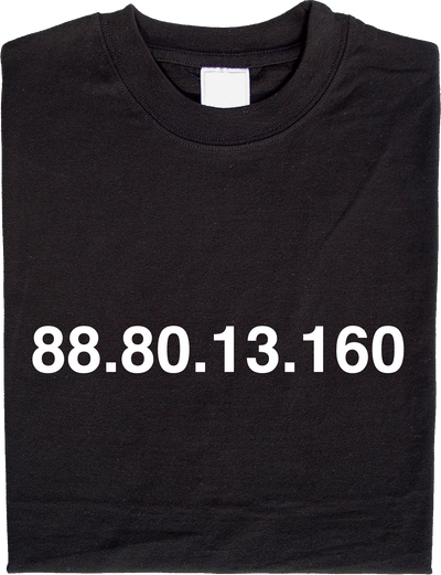 Een dergelijke site wordt natuurlijk steeds weer blootgesteld aan vijandigheid en het is daarom helemaal niet zeker dat je deze altijd via het domein "wikileaks.org" kunt bereiken. Daarom is het belangrijk dat zoveel mogelijk mensen het IP-adres van Wikileaks kennen en het past natuurlijk perfect om dit op een shirt te drukken! Ter verduidelijking: door het IP-adres in de browser in te voeren, kun je een site nog steeds oproepen, zelfs als het domein is geblokkeerd.
