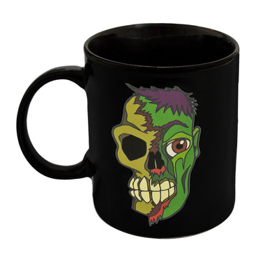 Je schoonmoeder zal zich zeker verheugen als ze tijdens een bezoek haar koffie uit de beker drinkt en iemand dan "Zombie!" roept! Dat geldt natuurlijk niet voor haar, maar voor de zombie op de beker. Die is echter alleen aan één kant zichtbaar: De kant die van haar afgewend is. Een echt onschuldige zwarte beker ;)
