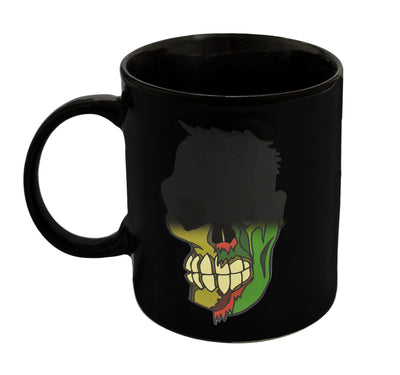 Deze beker staat zwart en onopvallend in jouw kast. Maar als je een heet en verkwikkend drankje eruit drinkt, wekt het de zombie in jou - en ook op de beker!