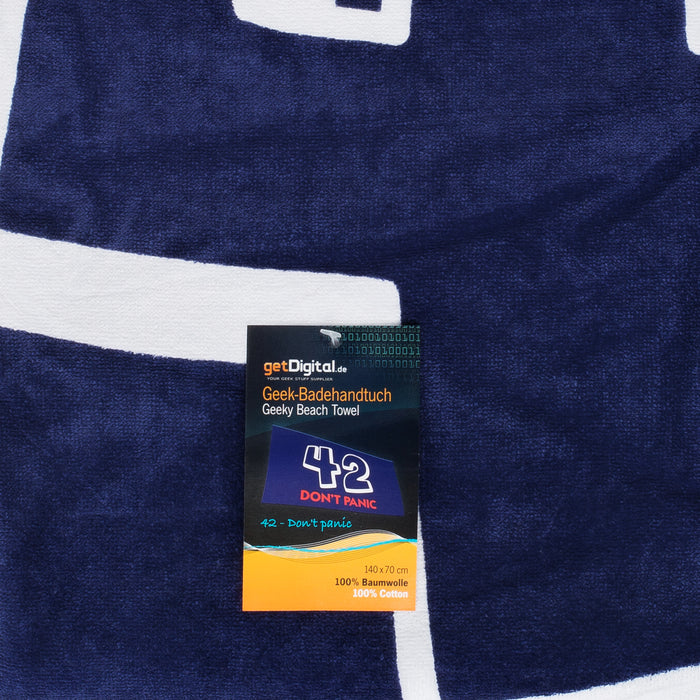 Deze prachtige handdoek bevat ook het antwoord op de vraag over het leven, het universum en al het andere. Dus als je vastzit na een hete douche of als je op het strand ligt... Kijk eens naar je badhanddoek!