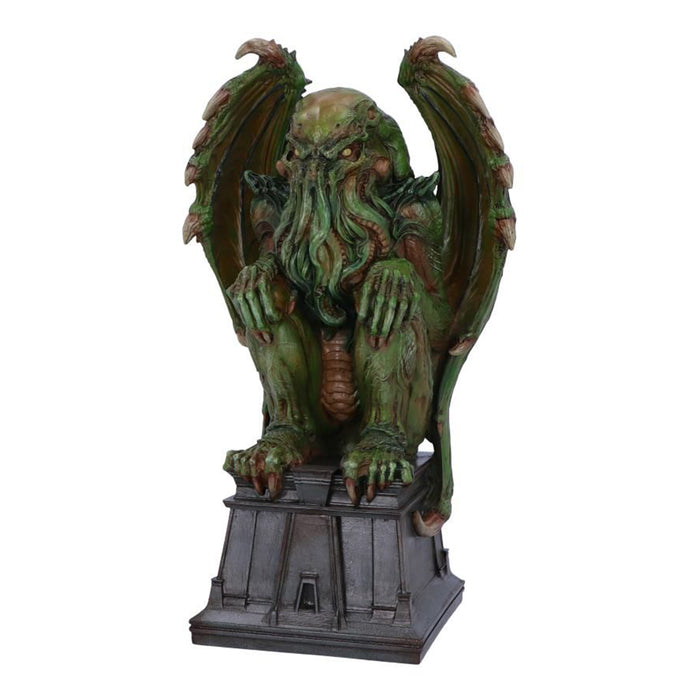 Het Cthulhu standbeeld, ontworpen door James Ryman, is helemaal gewijd aan het gruwelijke monster uit de literaire nalatenschap van Lovecraft. De figuur met vleugels, tentakels, doordringende ogen, reptielenhuid en scherpe klauwen is tot in het kleinste detail gemodelleerd naar de beschrijving uit Lovecrafts beroemde korte verhaal "Cthulhu's Call". Dit 32 cm grote beeld zal echt indruk maken op je verzamelplank naast een werk van Lovecraft of je collectie horrorfilms. Of het net zo'n effect zal hebben op je gevoelige menselijke geest als zijn literaire rolmodel is iets wat je zelf zult moeten ontdekken ;)