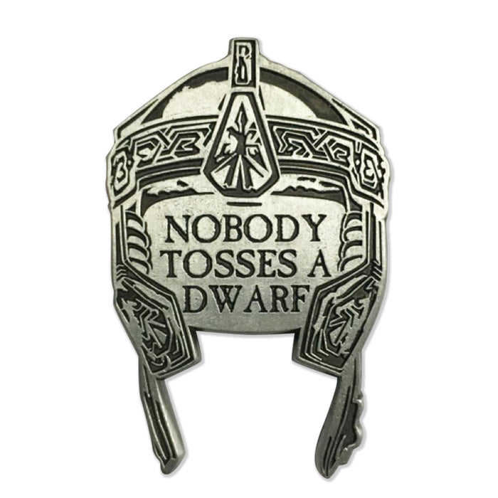 Om Gimli's evolutie van trotse krijger naar werpprojectiel te vieren, hebben we The Lord of the Rings Limited Edition Pin Gimli's Helm. De speld is tot in het kleinste detail gemodelleerd naar Gimli's helm, met speciale aandacht voor de dwergenrunen. Een echte Lord of the Rings fan zal de helm meteen herkennen. De helm is toepasselijk versierd met Gimli's zin "Niemand gooit een dwerg", wat doet denken aan het iconische moment tussen hem en Aragorn. Maar wacht niet te lang: de badges zijn gelimiteerd tot 9.995 stuks wereldwijd!