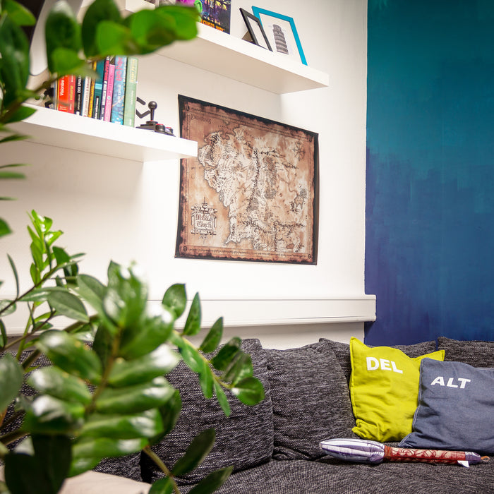 En je kunt deze legendarische kaart nu aan je muur hangen! De "The Lord of the Rings" poster "Map of Middle-earth" is gebaseerd op Tolkiens originele kaart en laat je de avonturen van de metgezellen en andere personages geografisch organiseren. De kaart is gedrukt op 170 g/m² papier en wordt natuurlijk opgerold geleverd. Want gevouwen posters zouden zelfs voor Sauron een beetje te gemeen zijn...