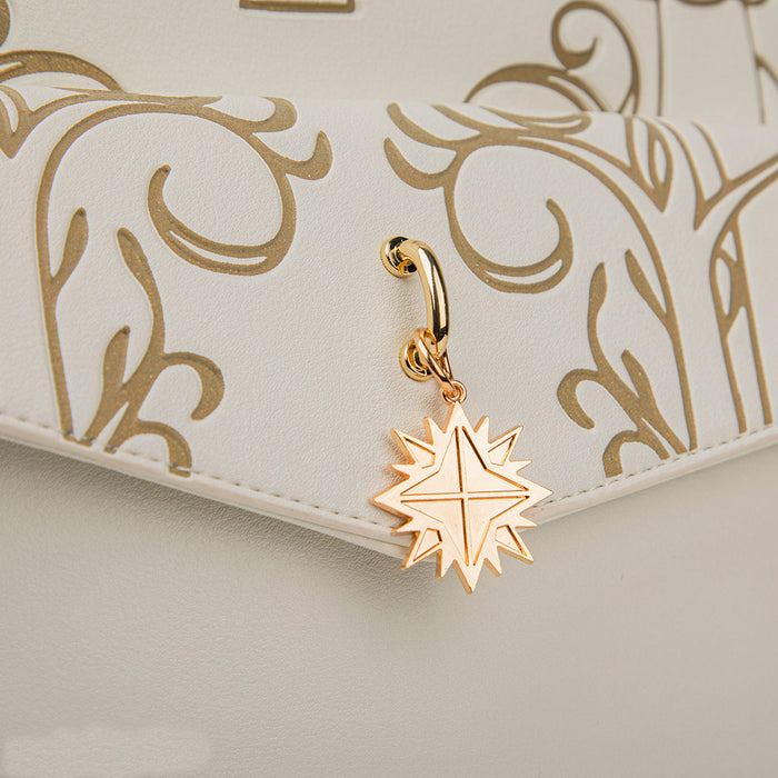 De rugzak is wit en de opdruk is in elegant goud. Net als de letters op de rotspoort uit de film en het boek, gloeit de opdruk in het donker. De ster, die te zien is op de deuren van Durin, dient als hanger om het voorvak van de rugzak te openen. Hoewel de binnenkant van de rugzak voldoende ruimte biedt voor lembas, echt elventouw, pijpekruid en andere alledaagse voorwerpen, hoef je in de diepte niet bang te zijn voor een Balrog van Morgoth, hoe diep je ook graaft.