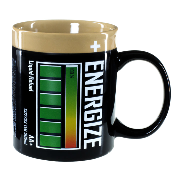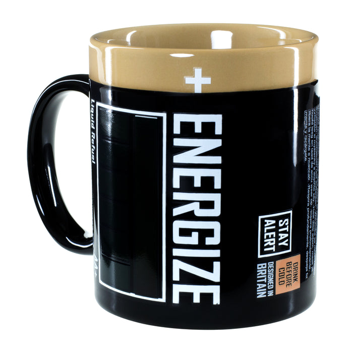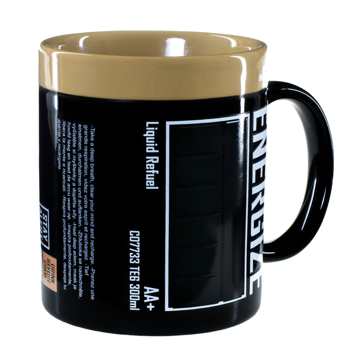 So wie jedes Gerät muss auch der menschliche Körper regelmäßig aufgeladen werden. Deshalb sollte man stets genug Batterien und Kaffee vorrätig haben, so kommt nichts ins Stocken. :) Nichts belebt so sehr wie eine heiße Tasse Kaffee. Dieser Becher visualisiert, was Du fühlst: beim Einschenken heißer Flüssigkeiten (Kaffee, Tee, Lava) füllt sich der Ladebalken der Batterie wieder bis auf 100%. Je weniger Kaffee oder je kälter er ist, desto weniger Energie verbleibt in der Tasse. ;)
