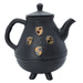 • Theepot van zwart keramiek met mokken in de vorm van ketels