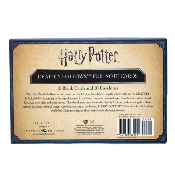Elke set bevat 10 wensbrieven van het desbetreffende motief en 10 bijpassende enveloppen. De formaten van de varianten verschillen ook. De motieven Gryffindor, Slytherin en Deathly Hallows zijn iets kleiner dan normale ansichtkaarten, terwijl de motieven Ravenclaw en Hufflepuff op miniatuur ansichtkaarten zijn gedrukt.
