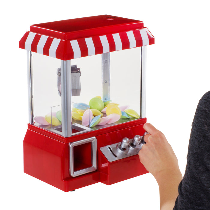 Gelukkig hoef je geen echt geld in de kermissnoepmachine te stoppen, maar kun je de 24 speelmunten steeds opnieuw gebruiken. Zodra je een munt hebt ingebracht, heb je een goede minuut om er een snoepje uit te vissen met de kleine graafmachineschep. Je hoeft het alleen maar te pakken en naar de uitwerper te brengen... Argh! Oké, geoefende duimen zijn een voordeel, maar je hebt ook een beetje geduld nodig om de drie joysticks te gebruiken om alles veilig naar de opening te krijgen. Terwijl de klauw beweegt, klinkt er kermismuziek.