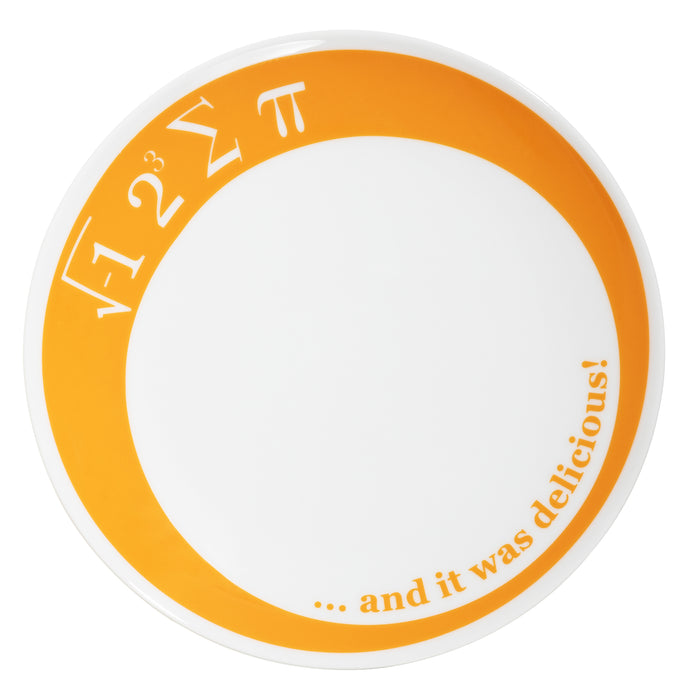 De taart is een Pi(e)! Wiskundigen met een basiskennis van het Engels zullen het weten: De ingewikkeld uitziende formulesymbolen op het taartbord worden uitgesproken als "I ate some pie". Dit komt omdat de wortel van -1 i is, twee tot de macht drie gelijk is aan 8, het somteken wordt uitgesproken als "som" en dan is er natuurlijk nog het teken voor pi, dat in het Engels klinkt als pie. Het perfecte bord voor alle fans van wiskundige vergelijkingen, woordgrappen - en natuurlijk taarten ;)