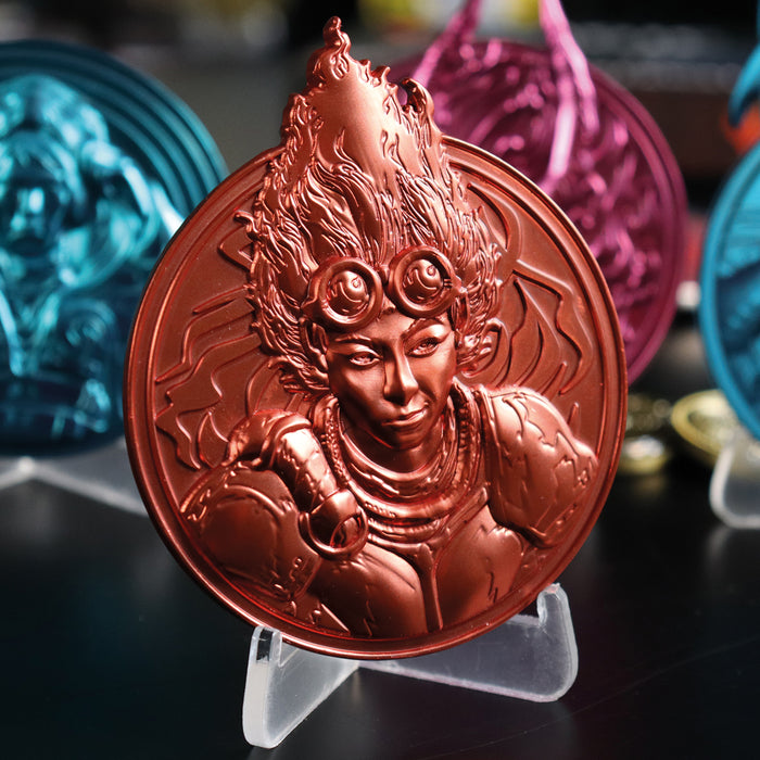 Op de vier medailles staan Chandra, Teferi, Ashiok en Jace afgebeeld. Chandra, de pyromage, beheerst het element vuur en kan met gemak hele legers vernietigen. Teferi daarentegen is een krachtige tijdmagiër die controle heeft over ruimte en tijd. Als meester van nachtmerries kan Ashiok zijn tegenstanders gevangen houden in een sluier van angst en verwarring. De geestmagiër Jace, die de gedachten van zijn tegenstanders kan manipuleren en controleren, is een van de machtigste planeswalkers.