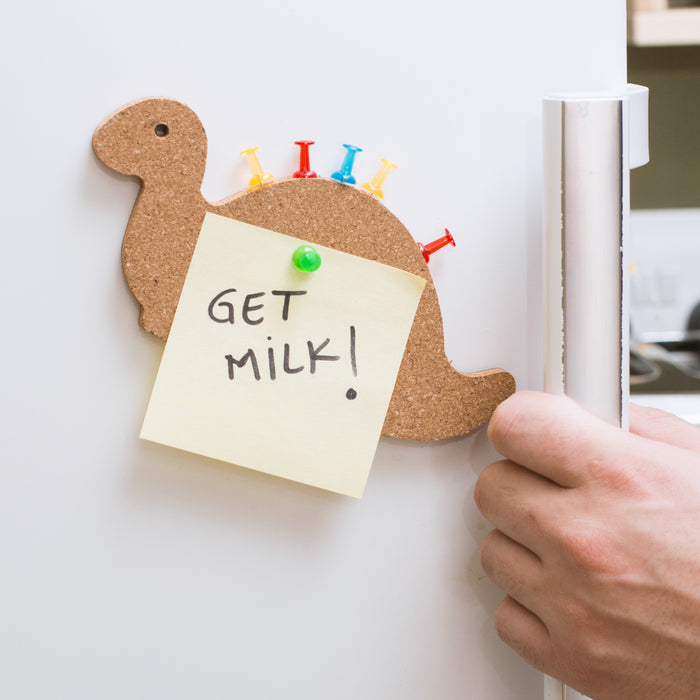 Om te voorkomen dat dit jou overkomt, kun je al je belangrijke afspraken, herinneringen en notities vastpinnen op het Magnetische Kurk Prikbord - Dinosaurus. Dankzij de magnetische achterkant kleeft het prikbord bijvoorbeeld aan de koelkast of andere magnetische oppervlakken. Hoe schattig en nerdy dit prikbord dinosaurus er ook uitziet, je zult er vanaf nu zeker vaker naar kijken. Je mist nooit meer een belangrijke afspraak en je weet zeker dat je alle ingrediënten onthoudt als je boodschappen gaat doen.