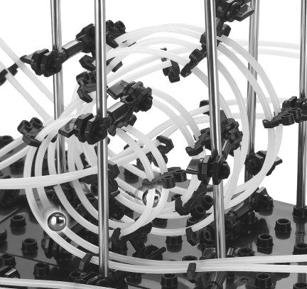 De knikkerachtbaan komt als compleet bouwpakket bij je thuis. Afgezien van een zijkniptang (een schaar volstaat in geval van nood) heb je geen ander gereedschap nodig. Het in elkaar zetten van de knikkerachtbaan is niet iets dat in een paar eenvoudige stappen gedaan kan worden, maar is vrij veeleisend en vereist enige vaardigheid, tijd en vrije tijd, daarom is de knikkerachtbaan alleen geschikt voor jongeren vanaf 15 jaar.
