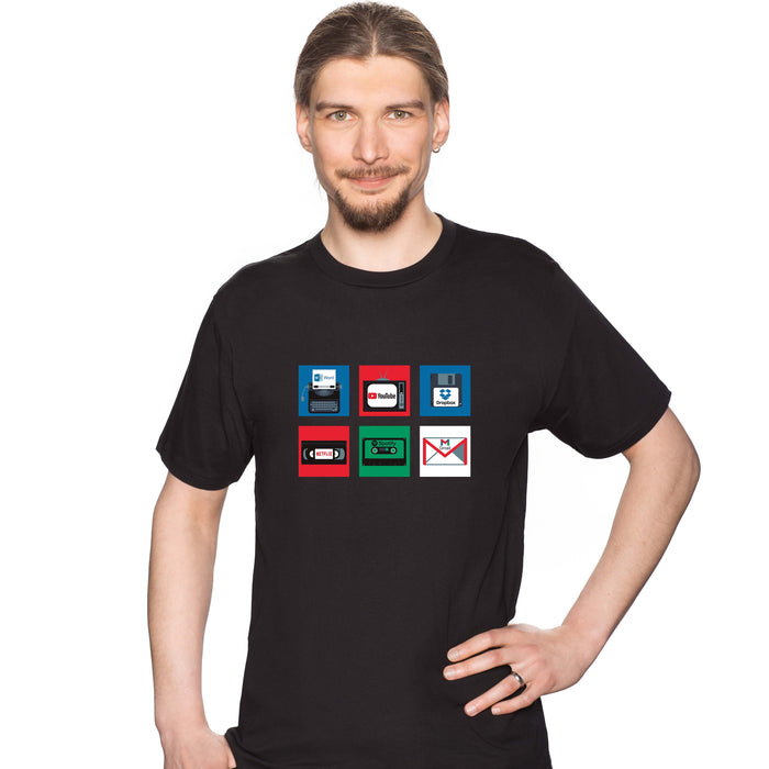 Hoe ouder je wordt, hoe meer je je verzet tegen verandering. Uit principe. Maar sommige ontwikkelingen zijn gewoon te goed om te weerstaan. Ja, de cassette was geweldig omdat je al je favoriete liedjes kon opnemen en cadeau kon geven. Maar hoeveel mooier klinkt die muziek tegenwoordig zonder dat je hoeft te ontdekken dat je broertje zijn boertjes tussendoor stiekem heeft opgenomen? De televisie is ook een geweldige uitvinding, maar het is toch prettiger om zelf te kunnen bepalen wanneer je een programma wilt kijken. Je kunt zien hoe de lijst verder gaat op het Oud & Nieuw T-shirt...