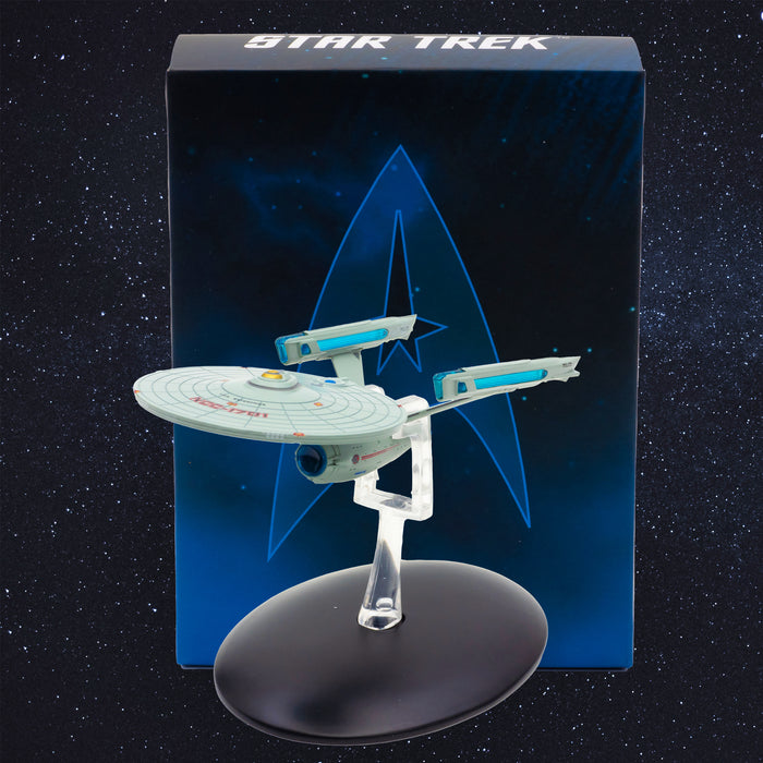 Het Star Trek Enterprise NCC-1701 model is natuurlijk het opgeknapte schip dat vanaf 2272 onder James T. Kirk door de uitgestrektheid van de ruimte vloog. Na maar liefst vier missies van vijf jaar was het tijd voor een opknapbeurt en vooral een verbeterd beschermend schild. Dit bewees kort na voltooiing zijn kwaliteit. Daarnaast kregen de warpgondels hun iconische blauwe ontwerp en kreeg de warpaandrijving (ondanks wat kinderziektes) hogere prestaties.