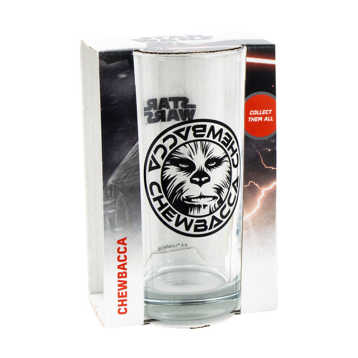 De set bevat vier drinkglazen, elk met een inhoud van 290 ml. De ontwerpen tonen Chewbacca, C-3PO, Darth Vader en een Stormtrooper in een minimalistische zwart-witte stijl. Gemaakt van glas, vaatwasmachinebestendig en officieel gelicenseerd door Disney/Lucasfilm - ideaal voor dagelijks gebruik en nog steeds het verzamelen waard.