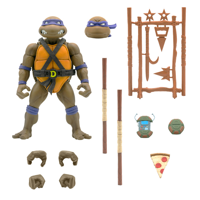 • Donatello: Hij is waarschijnlijk de enige van de vier Turtles die in elke situatie het hoofd koel houdt en daardoor menig conflict heeft kunnen de-escaleren. De technologiefreak neemt naast zijn communicator ook verwisselbare handen, zijn Bo en andere wapens mee.