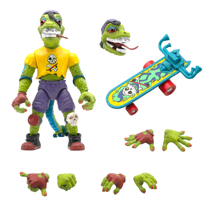 • Mondo Gecko: Na een meer dan ongelukkig toeval tijdens de repetitie van zijn heavy metal band, werd Mondo tegelijkertijd een gekko mutant en een goede vriend van de vier Turtles. Naast verwisselbare handen en hoofden zou de hagedis niet compleet zijn zonder zijn skateboard met turbo.