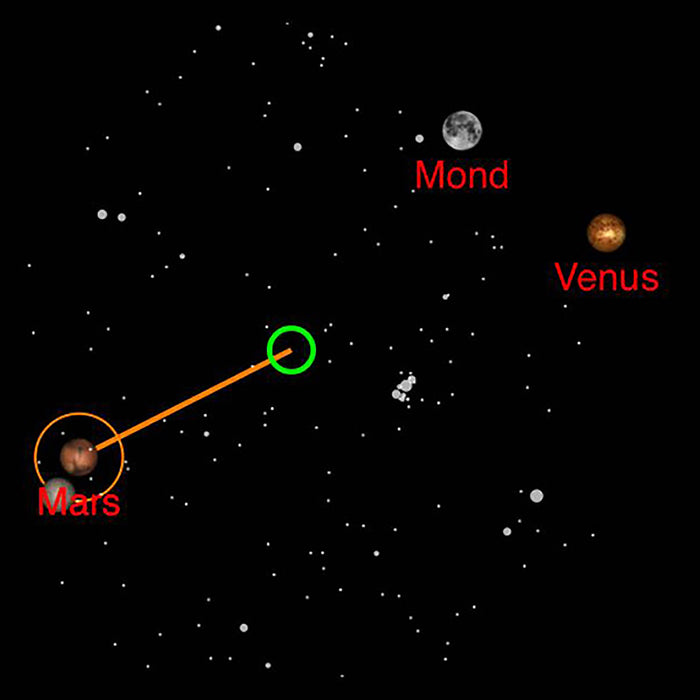 • Informatie over sterrenbeelden en co. wordt via spiegels over de nachthemel gesuperponeerd