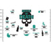 • Waterkaraf met 12 markeringen die de dodelijkheid van verschillende huishoudchemicaliën aangeven